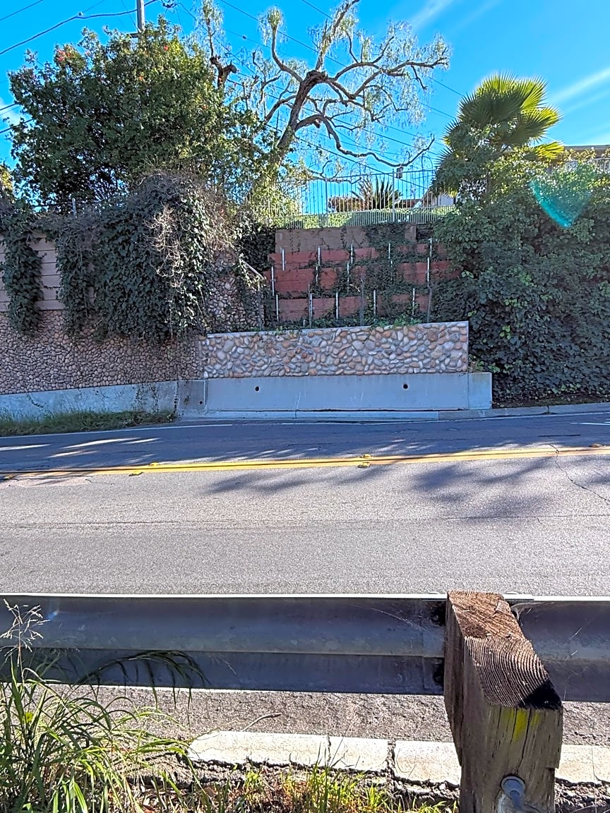 - OK - trying again. Someone dumped a residential door in the Aldine canyon across from my house. I filed a report a while ago and you responded that crews checked and couldn’t find it. I’m sending more detailed pictures of how to locate it. It’s maybe 20 feet into the south slope of the canyon, just off the north side of Aldine Drive. The pictures show my house on the other side - then the small, distinctive retaining wall on the south side of Aldine, then the power pole right above the spot.