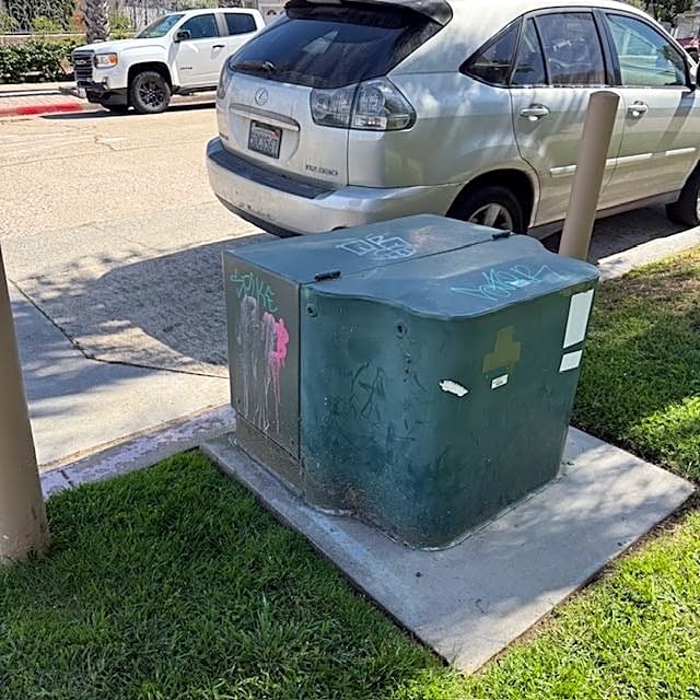 - Paint graffiti on the utility box near the curb.