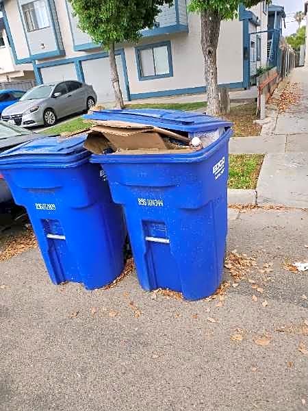 4740 BANCROFT ST, San Diego, CA, 92116The recycling bins and one trash bins are on the street next to the driveway but have not been picked up.