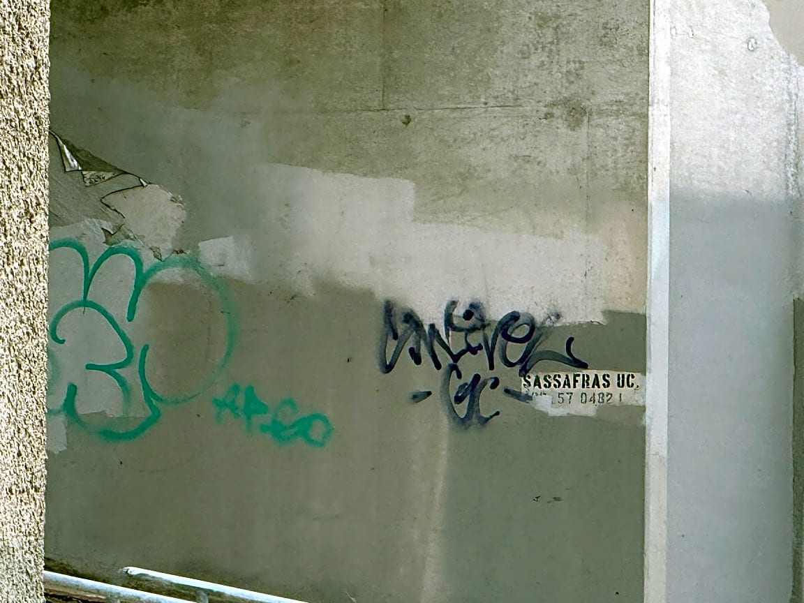 Homeless camp established just west of I-163 underpass on SD river walk way, see picture. Above the sidewalk