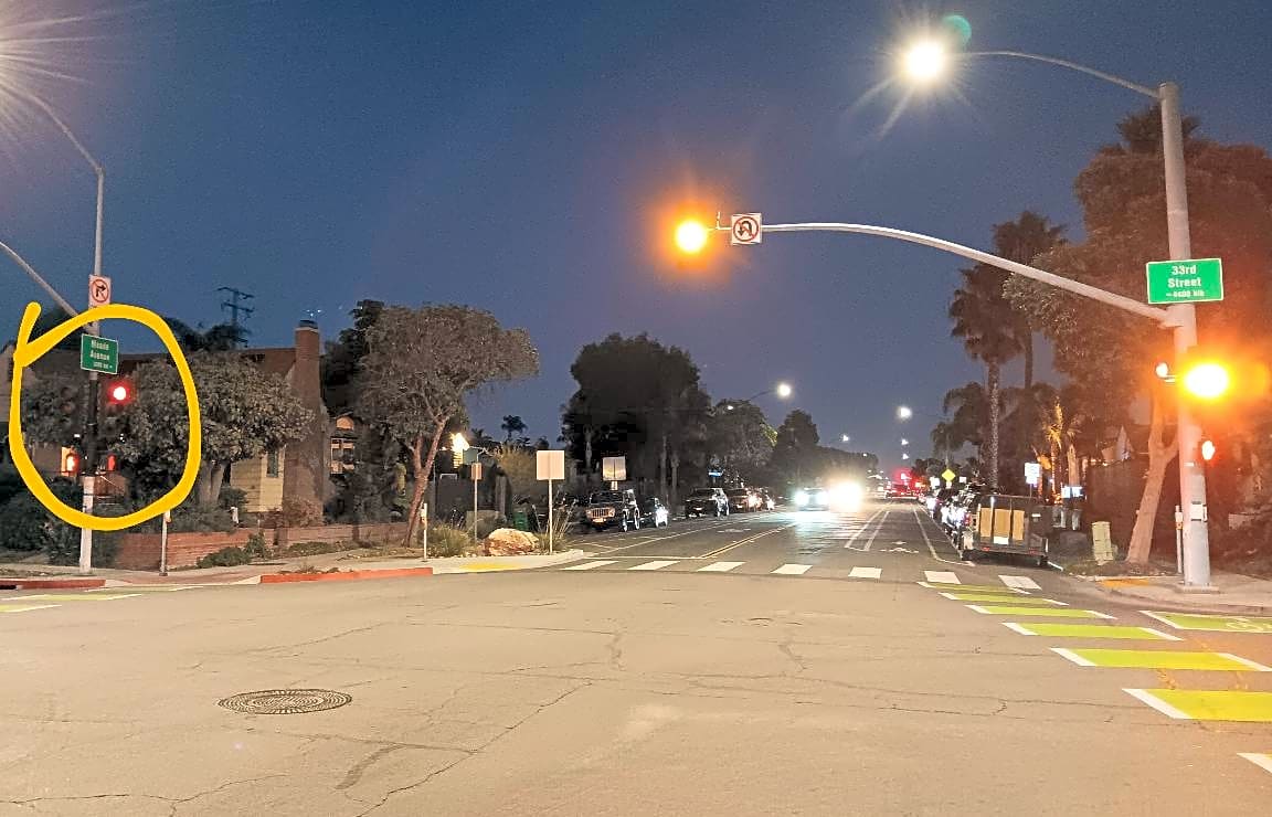 Dead yellow light on the NE corner of Meade Ave and 33rd St. The picture shows where the dead yellow is.