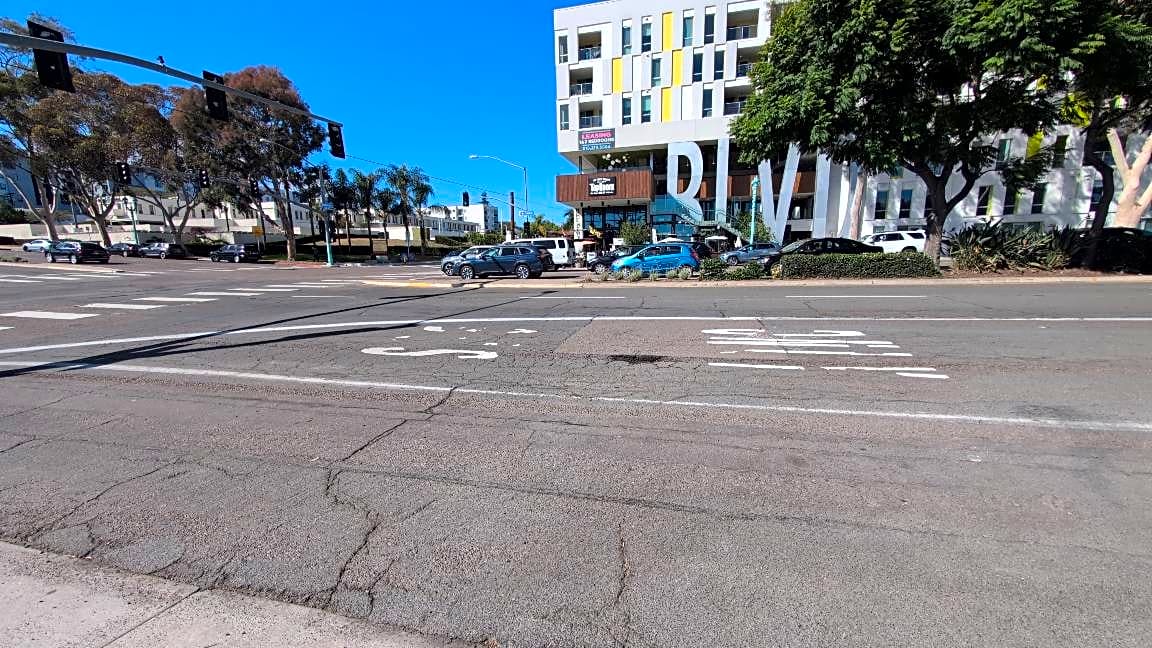 Huge pot hole in the bus/bike lane. This would seriously injure a cyclist || LOCATION: El Cajon and Florida || LANE: Bus || DIRECTION: Westbound