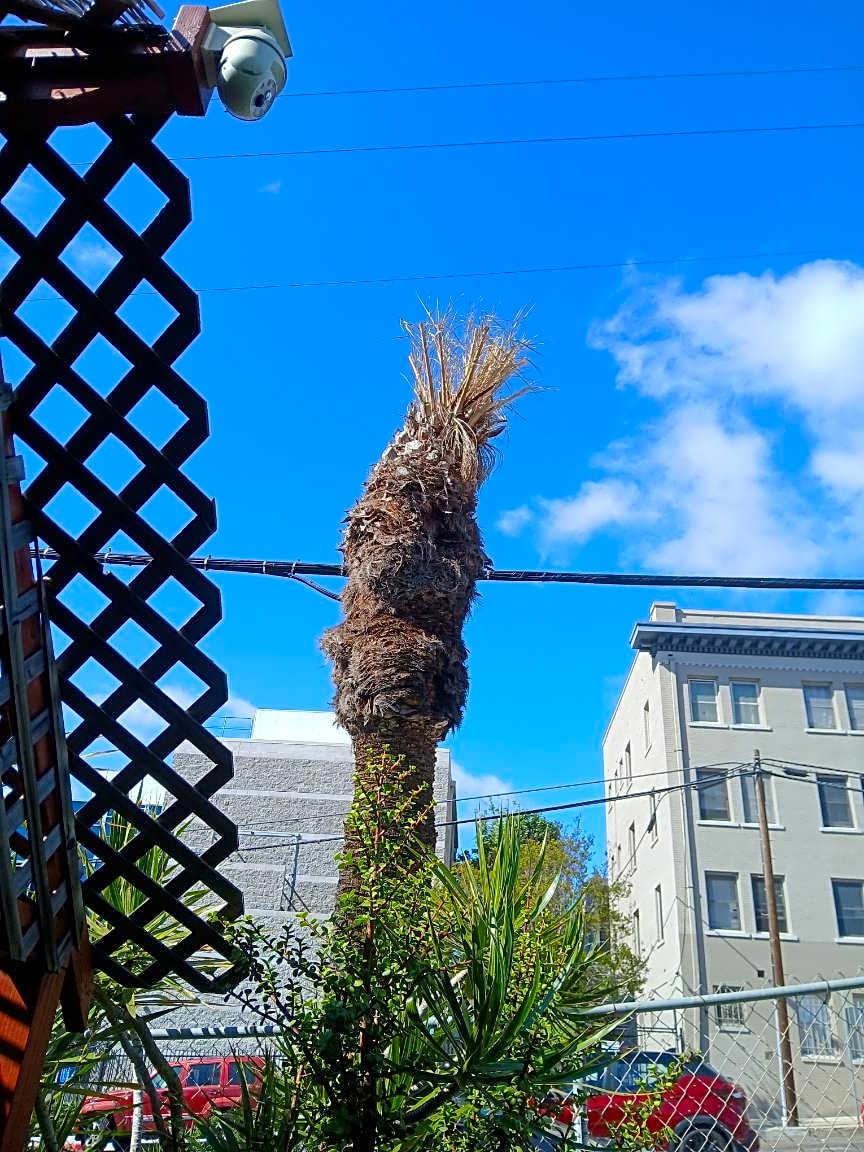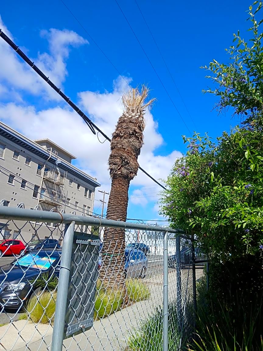 5518 Santo Rd, San Diego, CA 92124, USABlue tarp and other materials indicating a homeless encampment were present in the shrubbery behind the strip mall.