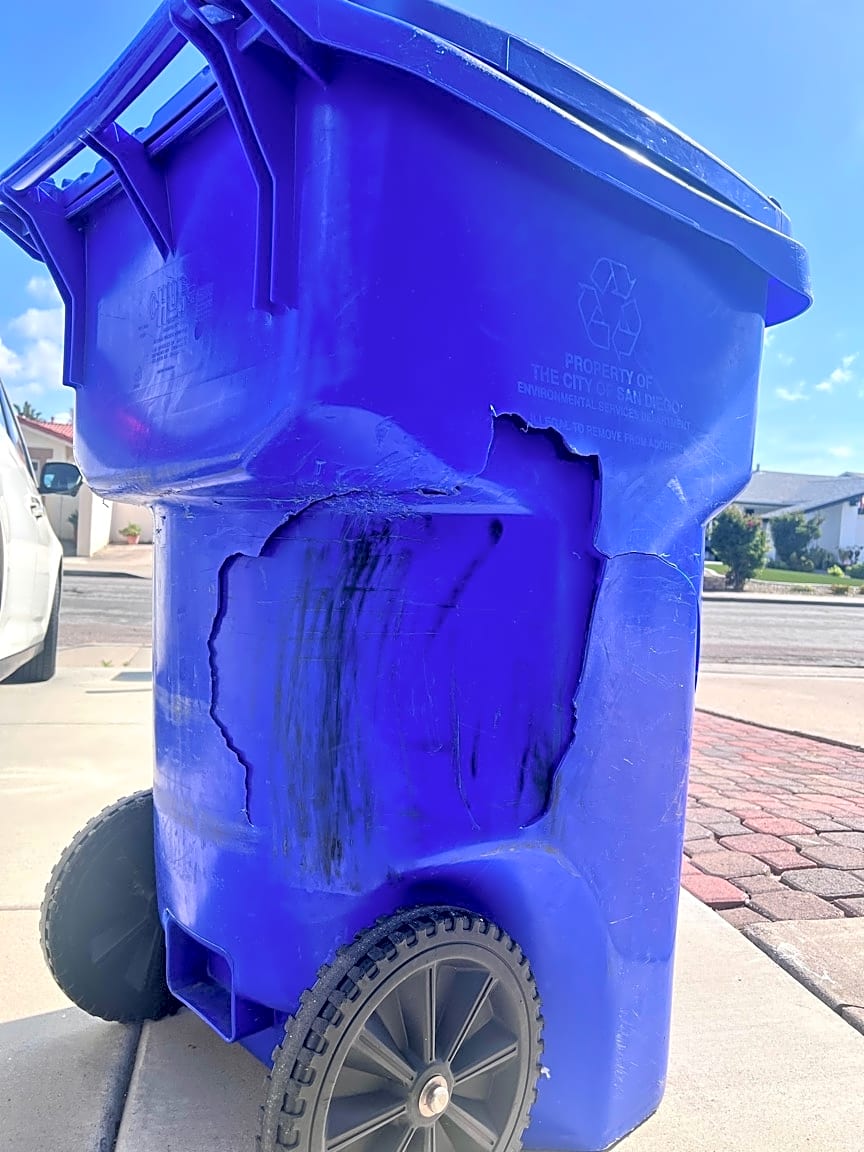 7880 Alcamo RdNeed a replacement blue recycle container. Current Blue recycle container broken from trash collector arm